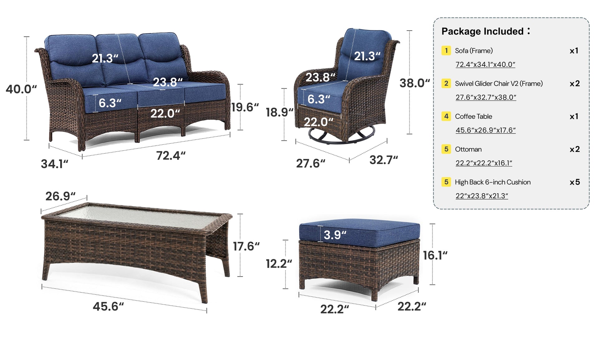 ✅ 6" Ultra-Thick Cushions for premium comfort