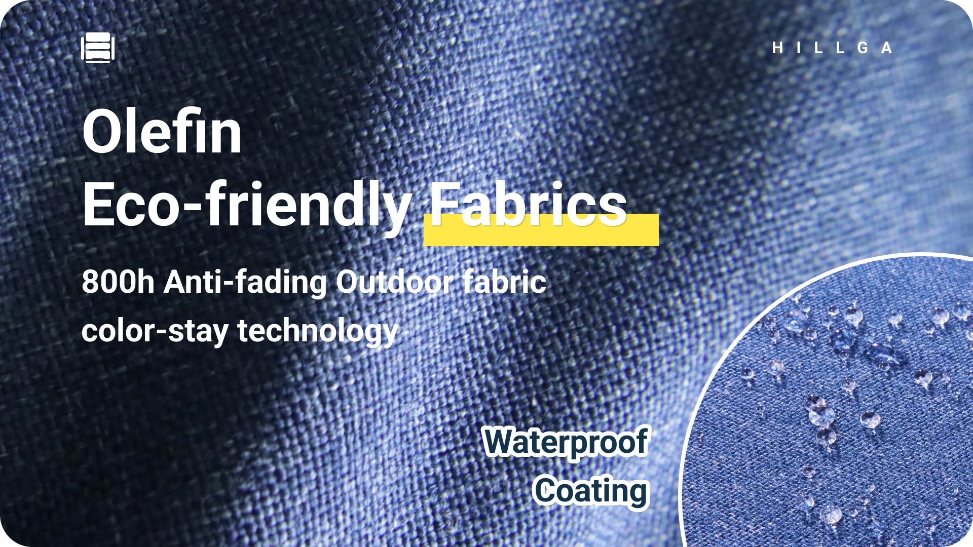 Solution-dyed performance fabric stays vibrant, repels water, and resists stains